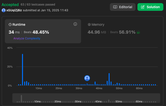 위와같은 코드로 개선을 하였고 실행속도가 상위권에 위치되는것을 확인했다.